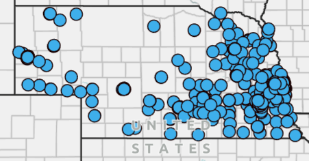 This map shows the per pupil expenditure for each school district in Nebraska. The data are sourced from the Nebraska Department of Education.